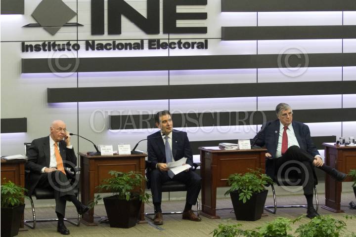 CIUDAD DE MÉXICO, 18JUNIO2018.- James Jones, embajador de Estados Unidos en México en los años de 1993-1997; Lorenzo Córdova, consejero presidente del INE, y Jeffrey Davidow, embajador de Estados Unidos en México en los años 1998-2002, participó en la conferencia "Evolución democrática de las instituciones electorales. Una visión internacional de México", realizada en la sede del INE. FOTO: MOISÉS PABLO /CUARTOSCURO.COM
