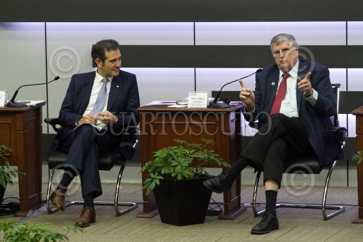 CIUDAD DE MÉXICO, 18JUNIO2018.- Lorenzo Córdova Vianello, consejero presidente del INE, y Jeffrey Davidow, embajador de Estados Unidos en México en los años 1998-2002, participaron en la conferencia "Evolución democrática de las instituciones electorales. Una visión internacional de México", realizada en la sede del INE. FOTO: MOISÉS PABLO /CUARTOSCURO.COM