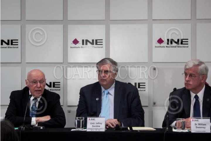 CIUDAD DE MÉXICO, 19JUNIO2018.- James Jones, embajador de Estado Unidos en México durante el periodo (1993-1997), y Jeffrey Davidow, embajador de Estado Unidos en México de 1998-2002, y William Sweeney, presidente de la Fundación Internacional para Sistemas Electorales (IFES por sus siglas en inglés) durante su participación en la conferencia Una Visión Internacional de las Elecciones Mexicanas, con motivo de los próximos comicios del primero de julio. FOTO: GALO CAÑAS /CUARTOSCURO.COM