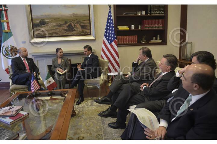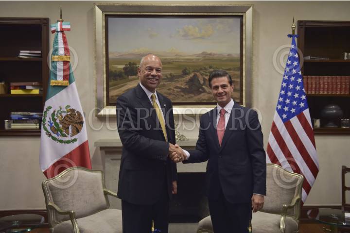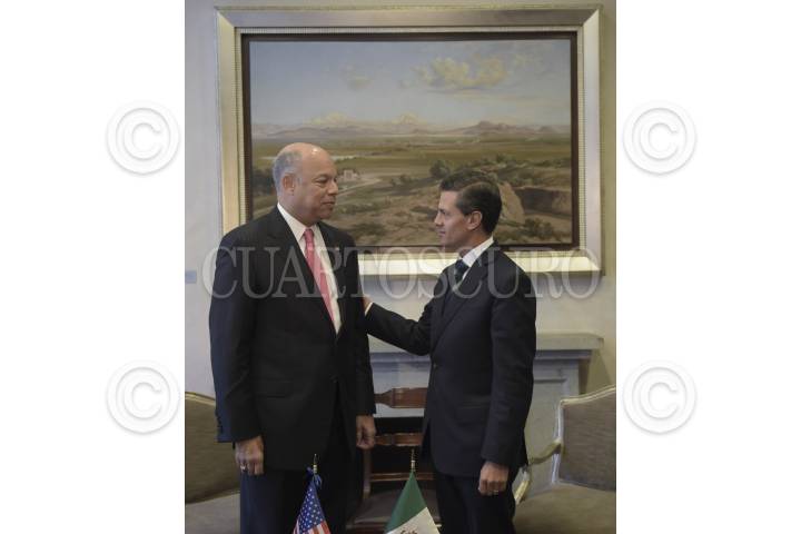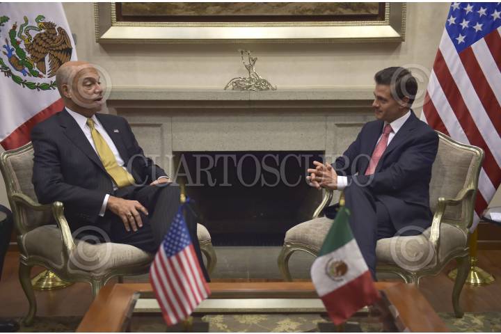MÉXICO, D.F., 14OCTUBRE2015.- El Presidente Enrique Peña Nieto se reunió esta noche en la Residencia Oficial de Los Pinos con el Secretario de Seguridad Interna de los Estados Unidos de América, Jeh Johnson. En el encuentro, el Primer Mandatario celebró la relación de confianza mutua y de cooperación productiva con el Gobierno del Presidente Barack Obama. FOTO: PRESIDENCIA /CUARTOSCURO.COM