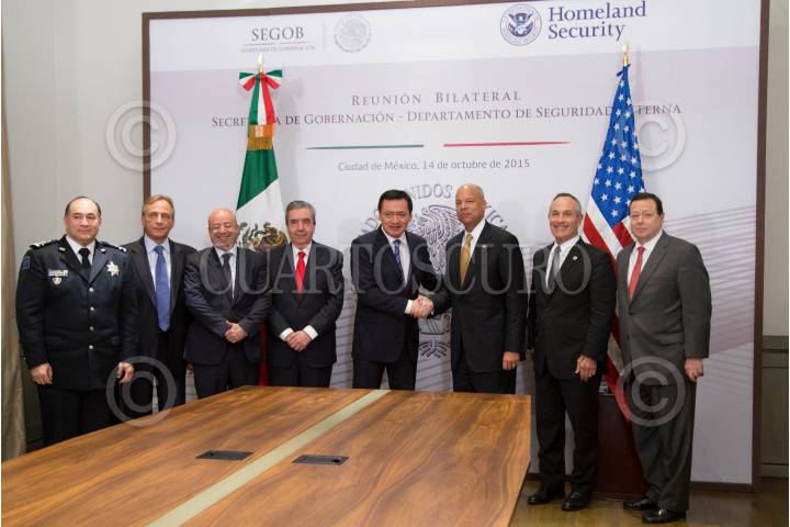 MÉXICO, D.F., 14OCTUBRE2015.- Miguel Ángel Mancera, secretario de Gobernación, y Jeh Jonnson, secretario de Seguridad Interna de Estados Unidos, sostuvieron una reunión en la que abordaron temas de interés, como migración, seguridad y cooperación bilateral. FOTO: CUARTOSCURO.COM
