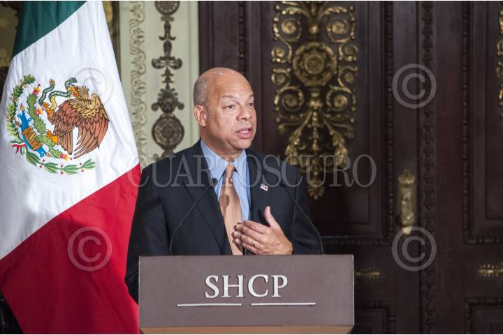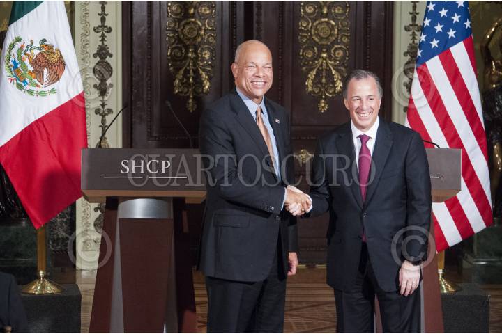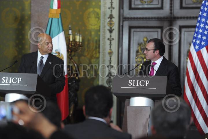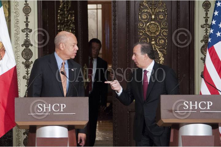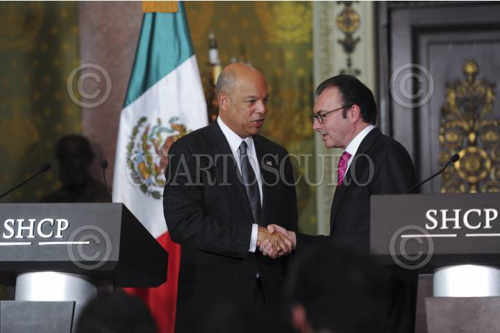 MÉXICO, D.F., 15OCTUBRE2015.- Luis Videgaray, secretario de Hacienda y Crédito Público, y Jeh Johnson, secretario de Seguridad Nacional de Estados Unido, firmaron un convenio entre ambas instituciones, en el Salón Panamericano FOTO: ARMANDO MONROY /CUARTOSCURO.COM