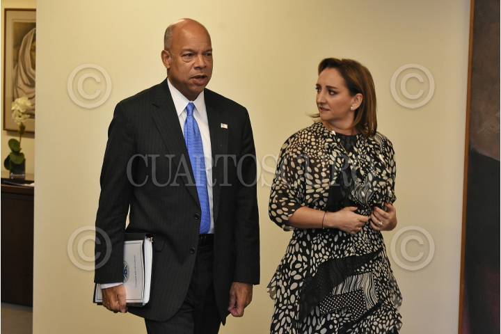 CIUDAD DE MÉXICO, 11OCTUBRE2016.- Claudia Ruiz Massieu, secretaria de Relaciones Exteriores, ofreció conferencia conjunta con Jeh Johnson, secretario de Seguridad Interna de Estados Unidos. Tras dos horas de espera los funcionarios arribaron al encuentro con medios de comunicación, del que cabe destacar no hubo ronda de preguntas, además de que no éxistió contacto alguno entre ambos, ni al principio o al término de la conferencia. FOTO: MARÍA JOSÉ MARTÍNEZ /CUARTOSCURO.COM