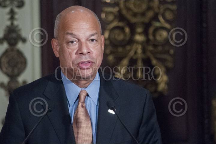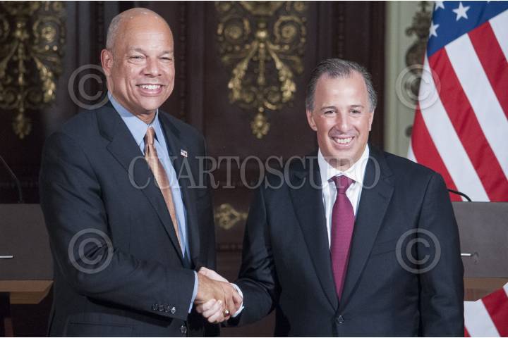 CIUDAD DE MÉXICO, 12OCTUBRE2016.- Jeh Johnson, secretario de Seguridad Interior de Estados Unidos, y José Antonio Meade, secretario de Hacienda y Crédito Público, ofrecieron un mensaje a los medios de comunicación luego de una reunión privada que sostuvieron en el marco de la visita del funcionario extranjero. FOTO: DIEGO SIMÓN SÁNCHEZ /CUARTOSCURO.COM