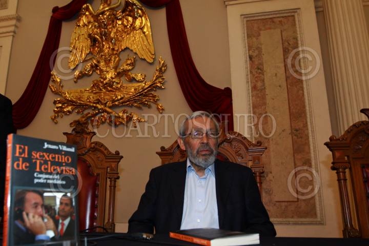 MEXICO, D.F., 26FEBRERO2011.- El periodista Jenaro Villamil, durante la presentación de su libro El Sexenio de Televisa que se realizo como parte de las actividades de la Feria del Libro del Palacio de Mineria. FOTO: RODOLFO ANGULO/CUARTOSCURO.COM