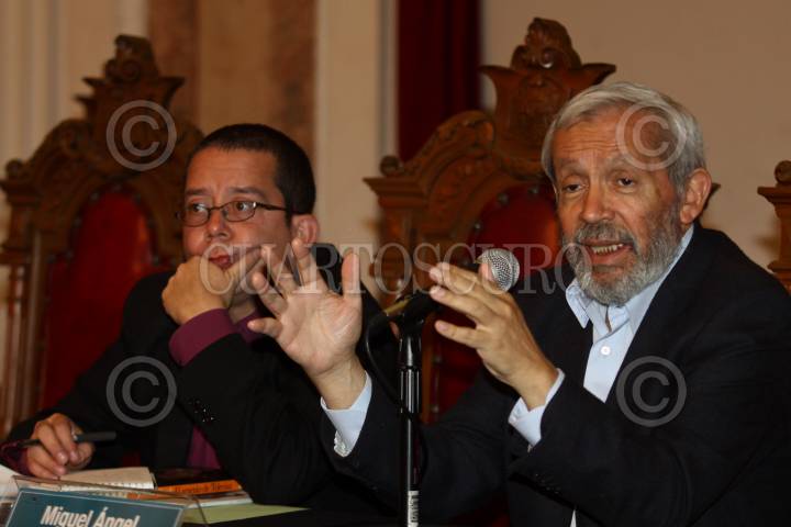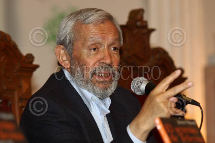MEXICO, D.F., 26FEBRERO2011.- El periodista Miguel Ángel Granados Chapa, durante la presentación del libro El Sexenio de Televisa del periodista Jenaro Villamil que se realizo como parte de las actividades de la Feria del Libro del Palacio de Mineria. FOTO: RODOLFO ANGULO/CUARTOSCURO.COM