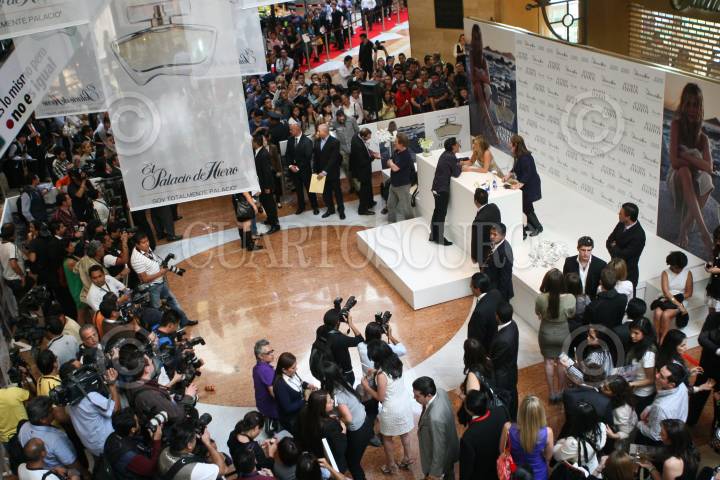 MÉXICO, D.F., 10MARZO2011.- Cientos de personas acudieron a obervar a la actriz Jennifer Aniston quien firmó autógrafos a sus fans en una famosa tienda departamental de Polanco, en el marco de su visita a México para promocionar una fragancia que lleva su nombre. FOTO: ISAAC ESQUIVEL/CUARTOSCURO.COM