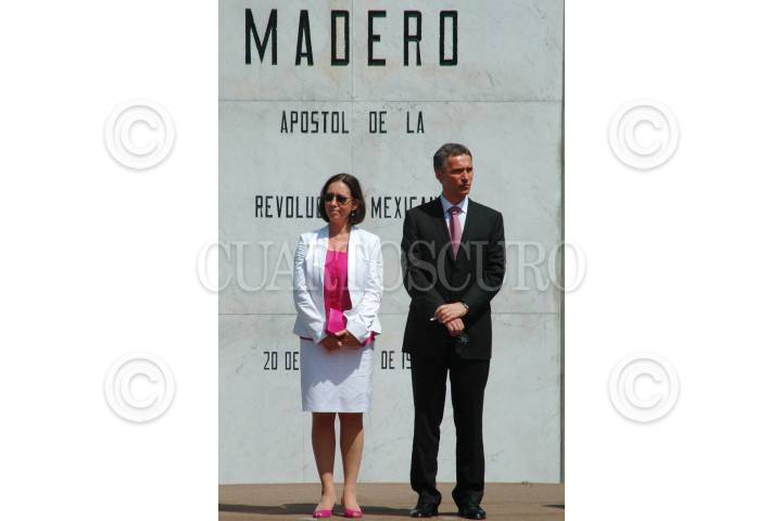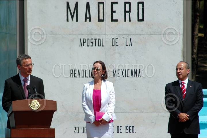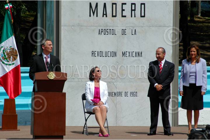 MÉXICO, D.F., 09ABRIL2010.- El presidente Felipe Calderón y el primer ministro de Noruega Jens Stoltenberg acompañados de sus respetivas esposas, Margarita Zavala e Ingrid Schulerud durante el evento de bienvenida que se celebro en la explanada del monumento a Francisco I. Madero de la residencia oficial de Los Pinos. FOTO: RODOLFO ANGULO/CUARTOSCURO.COM