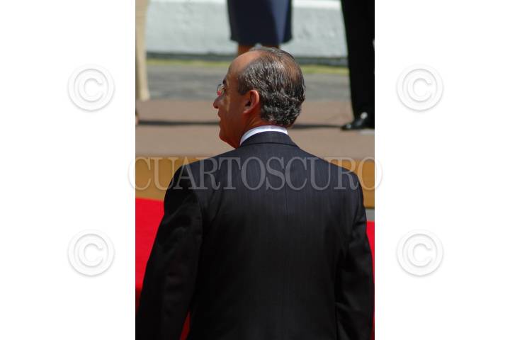 MÉXICO, D.F., 09ABRIL2010.- El presidente Felipe Calderón a su llegada a la ceremonia de bienvenida de Jens Stoltenberg, primer ministro de Noruega que se celebro en la explanada del monumento a Francisco I. Madero de la residencia oficial de Los Pinos. FOTO: RODOLFO ANGULO/CUARTOSCURO.COM