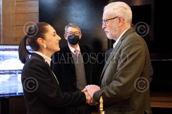 Claudia Sheinbaum y Jeremy Corbyn se reunieron en el Antiguo Palacio del Ayuntamiento.