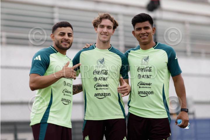 CIUDAD DE MÉXICO, 02JUNIO2025 Los jugadores de fútbol de la Selección Nacional; Alexis Vega, Marcel Ruiz y Jesús Gallardo, durante la concentración en el Centro de Alto Rendimiento (CAR). El combinado tricolor se encuentra en preparación para jugar dos partidos amistosos como parte de su preparación para la Copa de Oro. FOTO: CORTESÍA FMF/CUARTOSCURO.COM