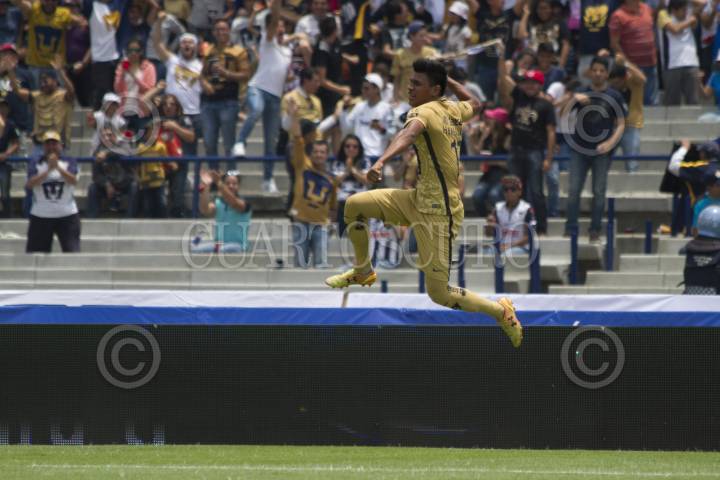 CIUDAD DE MÉXICO, 21AGOSTO2016.- Jesús Gallardo anotó el quinto gol, en la goleada que le propinaron los universitarios a los Rayados del Monterrey, quien respondió con tres goles pero no le alcanzaron. FOTO: MOISÉS PABLO /CUARTOSCURO.COM