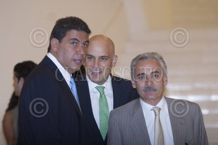 MÉXICO, D.F., 06SEPTIEMBRE2012.- Arturo Elias Ayub de America Móvil y Jesús Martínez presidente del equipo Pachuca de primera división, anunciaron la compra por parte del primero del 35% de las acciones de equipo Tuzo y del recién ascendido Panzas Verdes del León, así como los derechos de transmisión del los esmeraldas al canal UNO propiedad de Carlos Slim. FOTO: FRANCISCO RODRÍGUEZ /CUARTOSCURO.COM