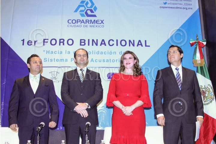 CIUDAD DE MÉXICO, 31OCTUBRE2017.- Gerardo Gámez Pacheco, presidente de la Comisión Jurídica y Normatividad del Centro Empresarial Coparmex Ciudad de México (izquierda); Diana Cristal González, asesora del Secretaria de Seguridad Pública, y Alfonso Pérez Daza, consejero de la Judicatura Federal, durante la inauguración del 1er Foro Binacional “Hacia la consolidación de un Sistema Penal Acusatorio”. FOTO: GALO CAÑAS /CUARTOSCURO.COM