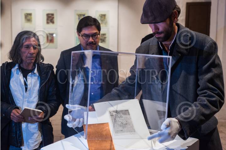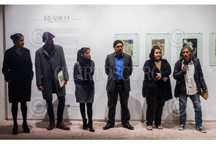 ZACATECAS, ZACATECAS, 2DICIEMBRE2017.- Alfonso Vázquez Sosa, director del Instituto de Cultura "Ramón López Velarde", acompañado por el pintor zacatecano, Jesús Reyes Cordero; encabezaron la inauguración de la exposición colectiva "Réquiem por Julio Ruelas" con motivo del 110 aniversario luctuoso de Julio Ruelas (Zacatecas 1870 - París 1907). La exposición que será itinerante se exhibe en el museo Pedro Coronel vincula la obra del zacatecano con la de 34 artistas que participaron en la intervención de "Medusa". FOTO: MISAEL VALTIERRA / CUARTOSCURO.COM