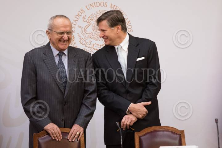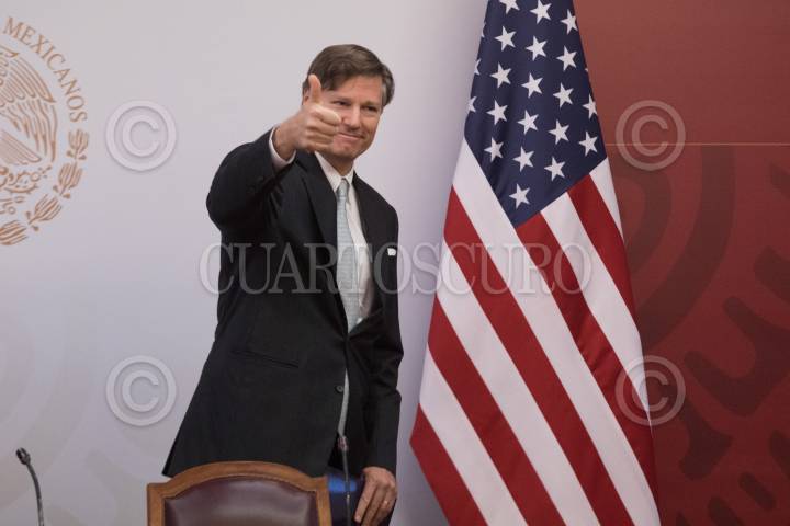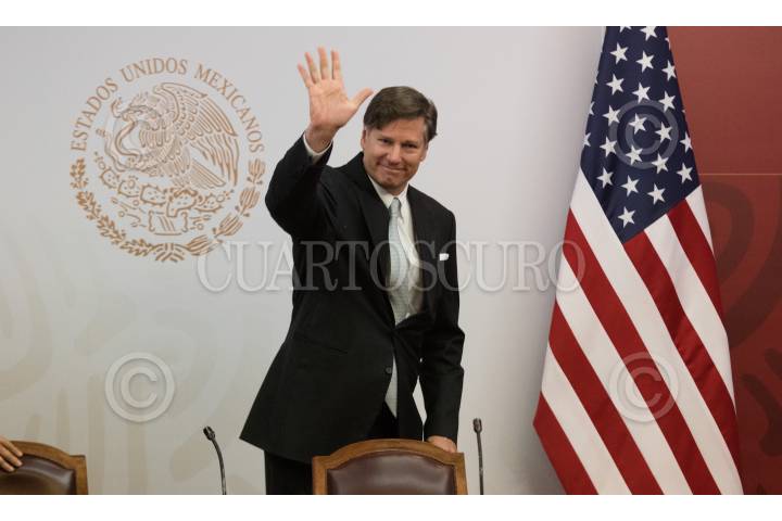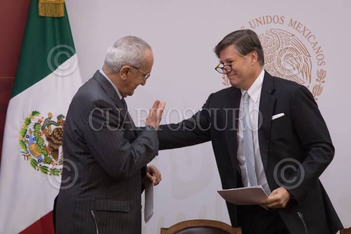 Ricardo Monreal, coordinador de Morena y de la Junta de Coordinación Política (JUCOPO) y Jesús Seade, subsecretario para América del Norte, se despidieron posteriormente a una conferencia de prensa en el Salón de Protocolo de la JUCOPO.