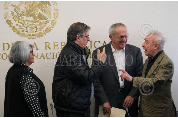 Graciela Márquez, secretaria de Economía; el canciller Marcelo Ebrard; Ricardo Monreal, coordinador de Morena y de la Junta de Coordinación Política (JUCOPO) y Jesús Seade, subsecretario para América del Norte, posterior a una conferencia de prensa en el Salón de Protocolo de la JUCOPO.