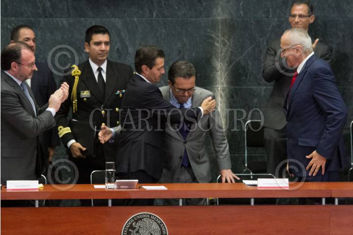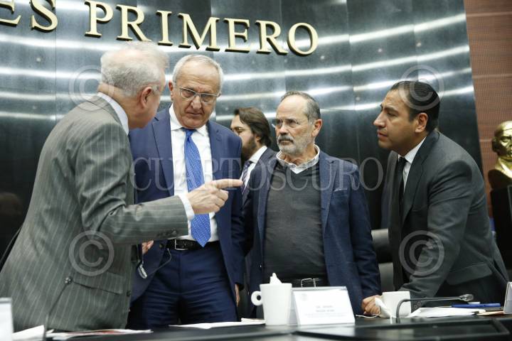 En la imagen conversa con los senadores Héctor Vasconcelos, Gustavo Madero, y Óscar Eduardo Ramírez.