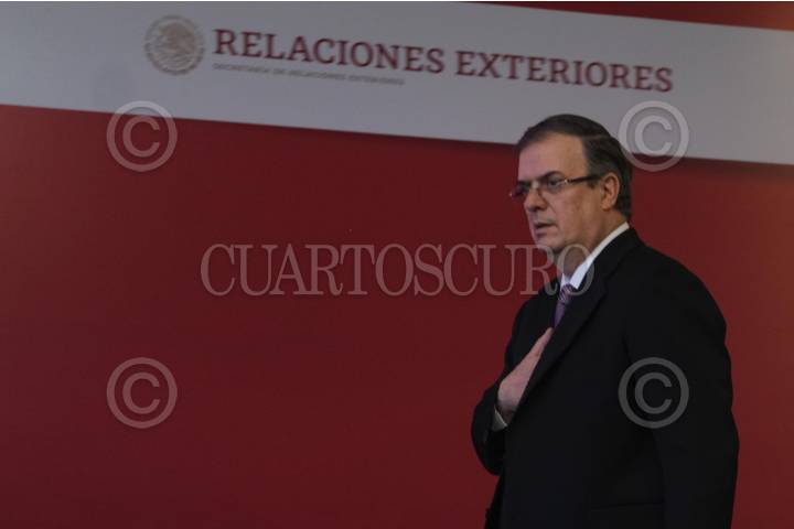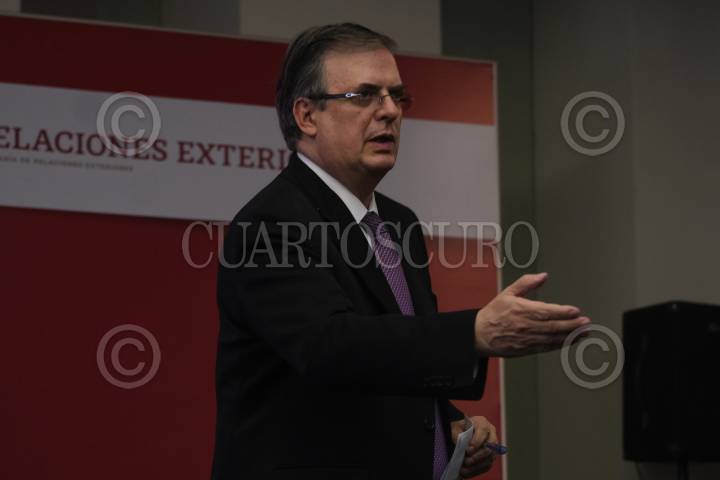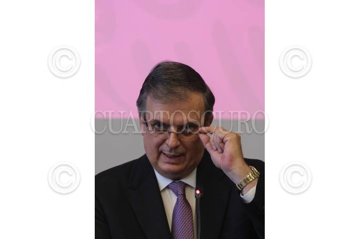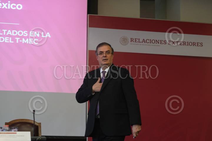 Marcelo Ebrad, secretario de Relaciones Exteriores, durante la conferencia de prensa en materia de la ratificación del TMEC.