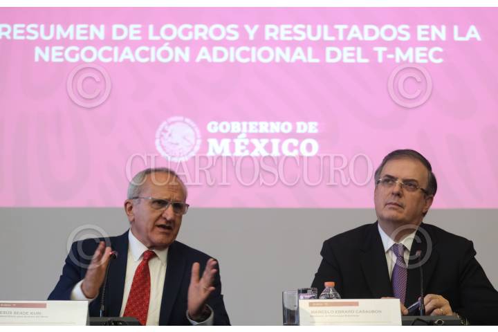 Jesús Seade, subsecretario para América del Norte, y Marcelo Ebrad, secretario de Relaciones Exteriores, ofrecieron una conferencia de prensa en materia de la ratificación del TMEC.