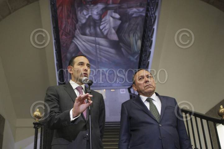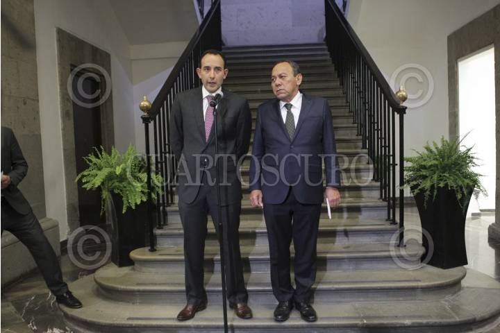 CIUDAD DE MÉXICO, 08FEBRERO2016.- Los presidentes de las mesas directivas del Senado y Cámara de Diputados, Roberto Gil Zuarth y Jesús Zambrano Grijalva, respectivamente, ofrecieron una conferencia de prensa después de sostener un encuentro de trabajo, ambos se refirieron a los cambios en el gabinete del Presidente Enrique Peña Nieto. FOTO: SENADO /CUARTOSCURO.COM