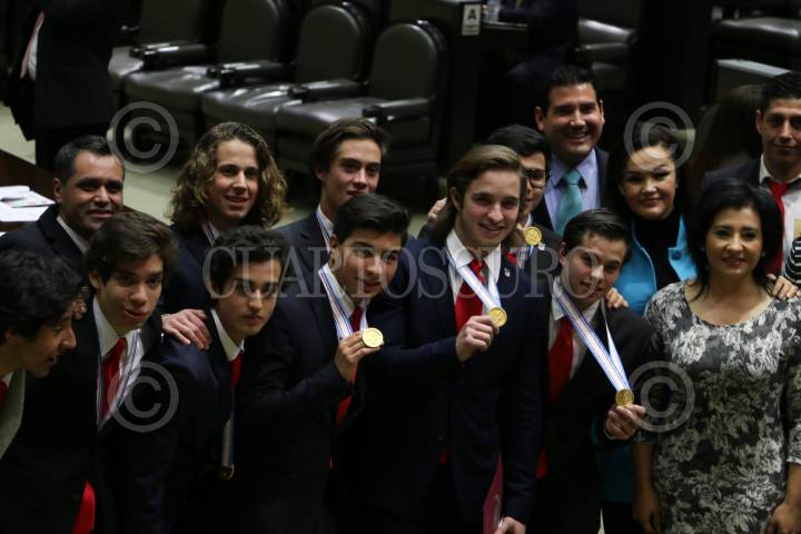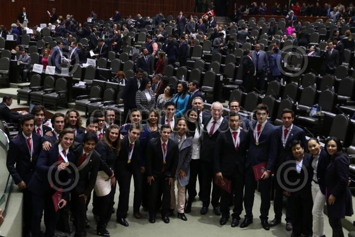 CIUDAD DE MÉXICO, 11FEBRERO2016.- Jesús Zambrano Grijalva, presidente de la mesa directiva de la Cámara de Diputados, recibieron a selección mexicana sub 20 de hockey sobre hielo en la Cámara de Diputados. FOTO: SAÚL LÓPEZ /CUARTOSCURO.COM
