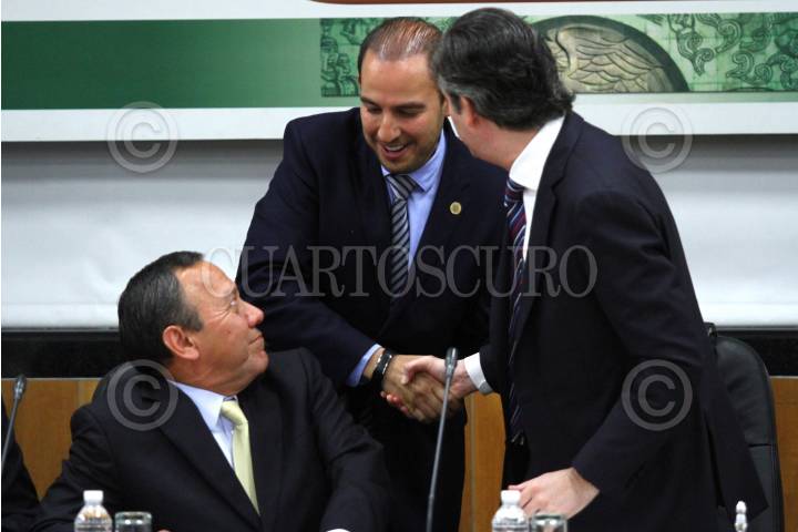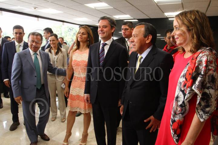 CIUDAD DE MÉXICO, 11AGOSTO2016.- Marco Cortez, diputado y coordinador de la bancada del PAN, Jesús Zambrano, presidente de la Mesa Directiva de la Cámara de Diputados y Aurelio Nuño Mayer, secretario de Educación Pública, durante la reunión informativa en la Cámara de Diputados, para presentar el "Modelo Educativo y la Propuesta Curricular para la Educación Obligatoria 2016" propuesta por la SEP. FOTO: ADOLFO VLADIMIR / CUARTOSCURO.COM