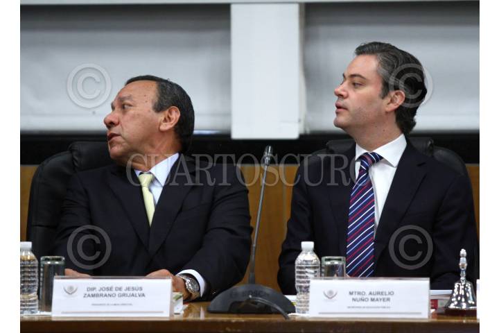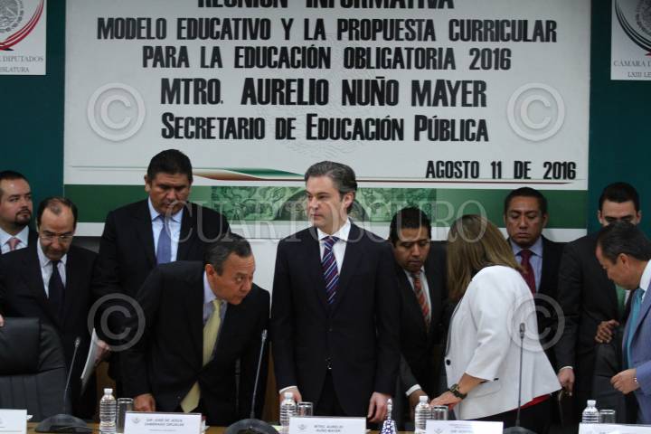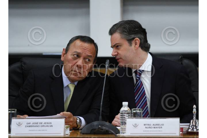 CIUDAD DE MÉXICO, 11AGOSTO2016.- Jesús Zambrano, presidente de la Mesa Directiva de la Cámara de Diputados y Aurelio Nuño Mayer, secretario de Educación Pública, durante la reunión informativa en la Cámara de Diputados, para presentar el "Modelo Educativo y la Propuesta Curricular para la Educación Obligatoria 2016" propuesta por la SEP. FOTO: ADOLFO VLADIMIR / CUARTOSCURO.COM