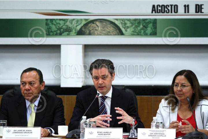 CIUDAD DE MÉXICO, 11AGOSTO2016.- Jesús Zambrano, presidente de la Mesa Directiva de la Cámara de Diputados y Aurelio Nuño Mayer, secretario de Educación Pública, Hortensia Aragón, diputada por el PRD y presidenta de la Comisión de Educación Pública y Servicios Educativos, durante la reunión informativa en la Cámara de Diputados, para presentar el "Modelo Educativo y la Propuesta Curricular para la Educación Obligatoria 2016" propuesta por la SEP. FOTO: ADOLFO VLADIMIR / CUARTOSCURO.COM