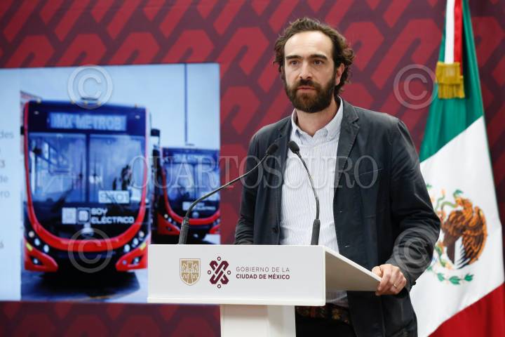 Jesús Esteva, secretario de Obras y Servicios, durante conferencia de prensa en la que se anunció la exposición sobre el Proyecto de Movilidad Integrada que se inaugurará mañana en el Monumento a la Revolución en el marco del Día Mundial sin Auto 2022.