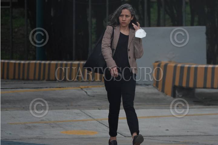 Maria Luisa Aguilar, defensora del Centro Agustín ProDh, sale durante un receso para alimentos de la audiencia de Jesús Murillo Karam.