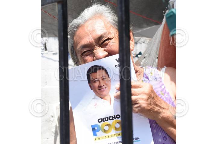 Jesús Pool candidato por el PRD y PAN, durante recorrido por calles de la ciudad.