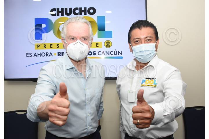 Jesús Pool , candidato a la presidencia municipal por la coalición PAN y PRD, y Santiago Creel, ex secretario de Gobernación, ofrecieron una conferencia de prensa.