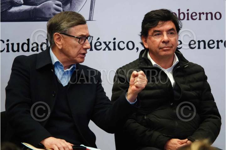 CIUDAD DE MÉXICO, 13ENERO2025.- Víctor Suárez Carrera, procurador agrario, y Jesús Ramírez Cuevas, coordinador de Asesores de la Presidencia de la República, conversaron durante su participación en el Foro de Consulta: Los ejidos y las comunidades agrarias en el Segundo Piso de la Cuarta Transformación. El evento se realizó en el Museo de la Ciudad de México. FOTO: GRACIELA LÓPEZ/CUARTOSCURO.COM