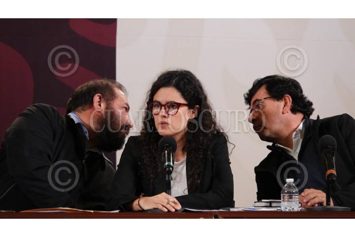 CIUDAD DE MÉXICO, 29ENERO2024.- Félix Arturo Medina Padilla, subsecretario de Derechos Humanos, Población y Migración, Segob; Luisa María Alcalde Luján, secretaria de Gobernación, y Jesús Ramírez Cuevas, coordinador general de Comunicación Social y vocero de Presidencia de la República, durante su participación en una conferencia de prensa sobre el posible acceso no autorizado al Sistema de Acreditación a Presidencia. El acto se realizó en Palacio Nacional. FOTO: GRACIELA LÓPEZ /CUARTOSCURO.COM
