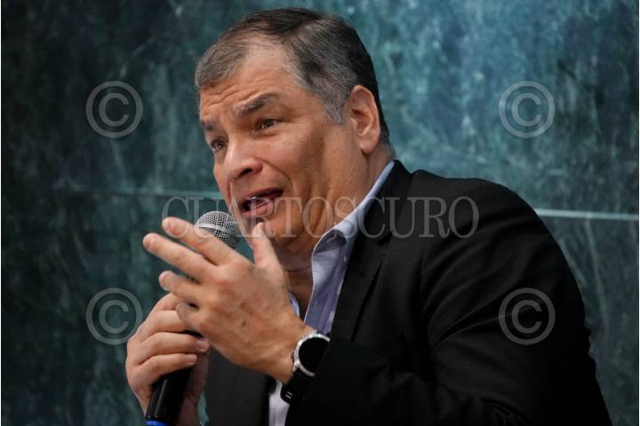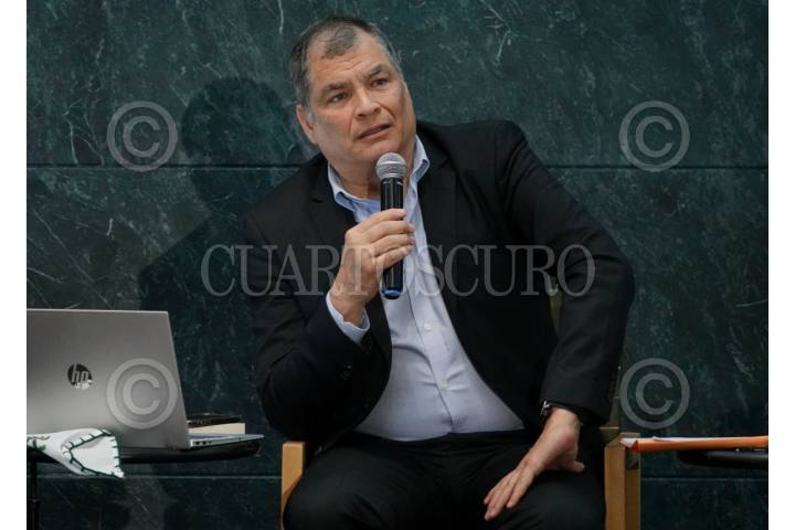 CIUDAD DE MÉXICO, 06MARZO202.- La política ecuatoriana Gabriela Rivadeneira; Jesús Ramírez Cuevas, vocero de la presidencia de la República; Rafael Correa, expresidente de Ecuador; el periodista argentino Gustavo Sylvestre y el cineasta chileno Marco Enríquez-Ominami participaron en la charla "El rol de los medios de comunicación en América Latina” en el complejo Cultural Los Pinos. FOTO: GALO CAÑAS/CUARTOSCURO.COM