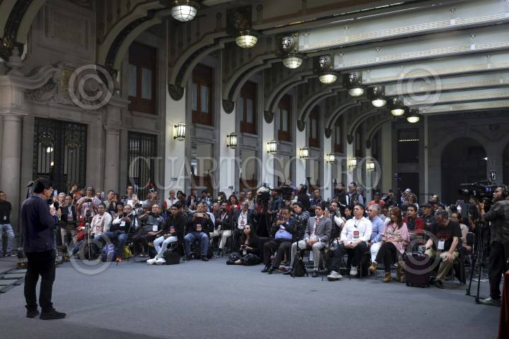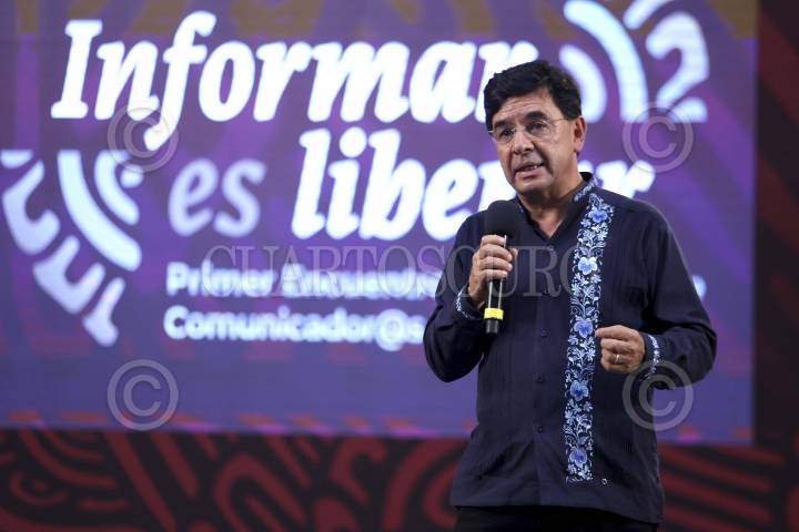 CIUDAD DE MÉXICO, 31AGOSTO2024.- Jesús Ramírez Cuevas, coordinador general de Comunicación Social y vocero del Gobierno de la República en el segundo día de trabajo y Clausura del "Primer Encuentro Continental de Comunicador@s Independientes: Informar es liberar" realizado en Palacio Nacional. FOTO: PRESIDENCIA/CUARTOSCURO.COM