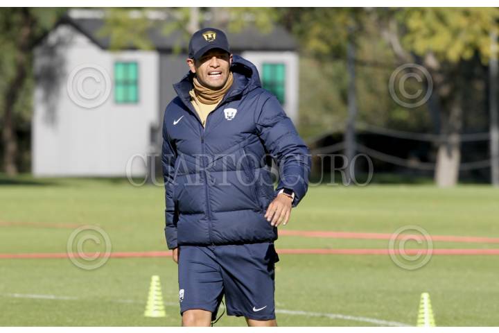 El DT Jhonathan Lazcano durante el entrenamiento del equipo Pumas Femenil en instalaciones de la Cantera, con miras al Torneo Clausura 2023 de la liga MX Femenil.