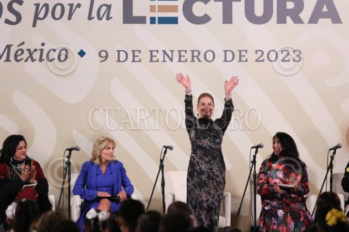 Jill Biden, primera dama de Estados Unidos; Beatriz Gutiérrez Müller, escritora y esposa del presidente de México, Andrés Manuel López Obrador, durante el Fandango Cumbre de las Americas que se lleva a cabo en Palacio Nacional.