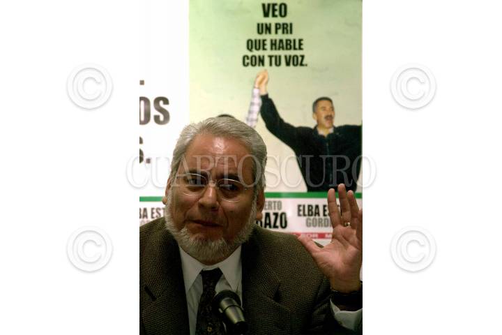 Carlos Jimenez Macias vocero de la formula de Roberto Madrazo y Elba Esther Gordillo, durante su discurso sobre los primeros resultados de las elecciones internas del PRI. FOTO: Victoria Valtierra/CUARTOSCURO.COM