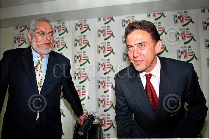 En ausencia de Roberto Madrazo, presidente del CEN del PRI, Carlos Jiménez Macias,vocero, y Miguel Angel Yunes, cooordinador juridico de dicho partido dieron a conocer en conferencia de prensa la convocatoria para elegir al nuevo coordinador de su bancada en la Cámara de diputados. FOTO: Sandra Perdomo/CUARTOSCURO.COM