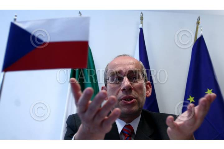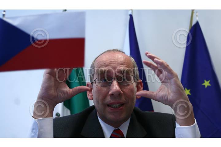 MÉXICO, D.F., 13ENERO2009.- Jiří Havlik, embajador de la República Checa, durante una conferencia de prensa en la cual se abordo la Presidencia Checa del Consejo de la Unión Europea, que es una presidencia rotativa (cada país miembro preside al consejo de la UE por seis meses). El país que precede determina la agenda de la Unión presenta los temas que considera más importante y de esta manera cada país tiene la posibilidad de influir en la orientación del conjunto. FOTO: MOISÉS PABLO/CUARTOSCURO.COM