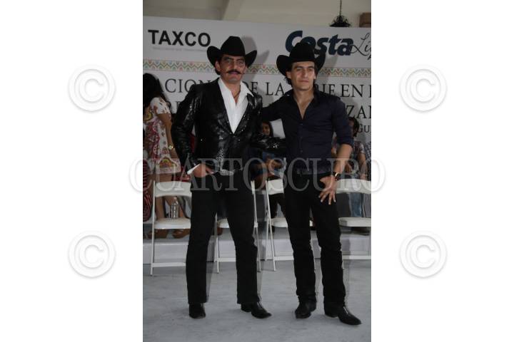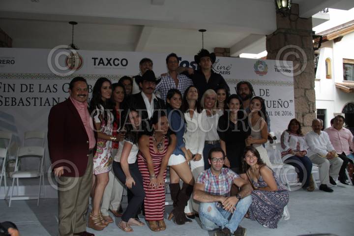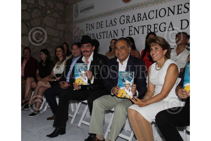 TAXCO DE ALARCON GUERRERO,8 DE ABRIL 2016 El Gobernador de Estado de Guerrero, Hector Astudillo, y la productora, Carla Estrada, y Jose Manuel Figueroa, Jose Julian Figueroa, hijos del fallecido,canta autor Joan Sebastian asistieron, al final, de grabaciones de la vida del canta autor FOTO:ANTONIO CRUZ/ CUARTOSCURO.COM