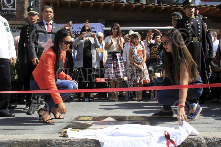 CUERNAVACA, MORELOS, 24NOVIEMBRE2015.- Alina Espino, viuda del cantante Joan Sebastian, así como sus hijas y hermanos Ana María, Rosalinda y Juan Marcos, asistieron a la Plaza de Armas a la inauguración de la Plaza de las Estrellas con la develación de la placa y estrella en homenaje al fallecido cantante y compositor José Manuel Figueroa, mejor conocido como Joan Sebastian. FOTO: PATRICIA MORALES /CUARTOSCURO.COM