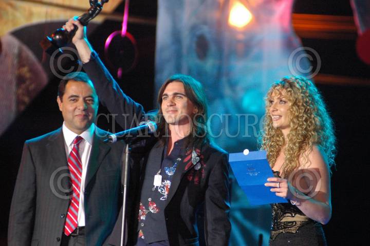 MÉXICO, D.F. 19NOVIEMBRE2005.- El colombiano Juanes recibió el premio “Oye”, de las manos de Joana Benedek, en la ciudad de México. FOTO: Iván Stephens/CUARTOSCURO.COM