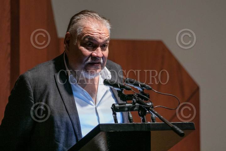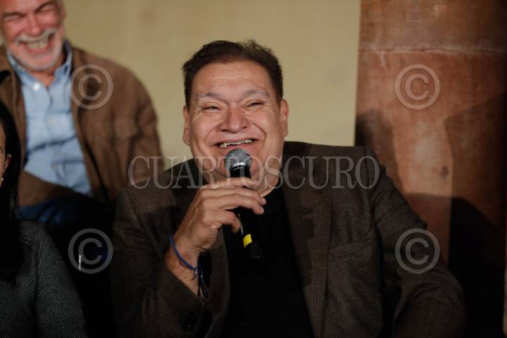 CIUDAD DE MÉXICO, 05AGOSTO2024.- El actor Joaquín Cosío recordó sus inicios junto a la dramaturga Perla de la Rosa, quien recibió la Medalla Bellas Artes 2024, en la Sala Manuel M. Ponce del Palacio de Bellas Artes. FOTO: MOISÉS PABLO/CUARTOSCURO.COM