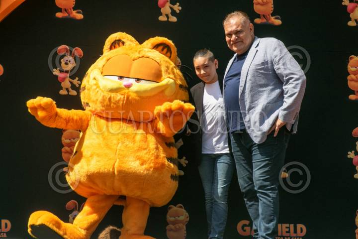 CIDAD DE MÉXICO, 28ABRIL2024.- Joaquín Cosío y su hijo posan en la alfombra roja de la película "Garfield Fuera de Casa". El actor mexicano es parte del elenco que le dieron voz a los personajes de esta película animada. FOTO: MOISÉS PABLO/CUARTOSCURO.COM