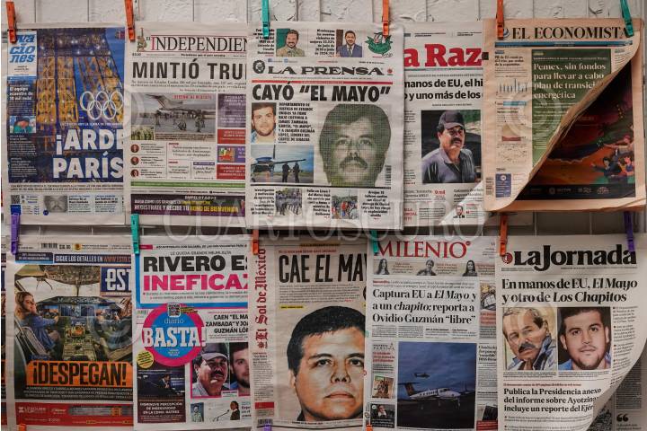 CIUDAD DE MÉXICO, 26JULIO2024.- El Rostro de Ismael “Mayo” Zambada recubrió las portadas de los diversos medios de tiraje nacional tras informarse de su detención la tarde de ayer en El Paso, Texas. El famoso narcotraficante, fundador del Cártel de Sinaloa, fue capturado junto a Joaquín Guzmán López, hijo de El Chapo Guzmán. FOTO: GALO CAÑAS/CUARTOSCURO.COM