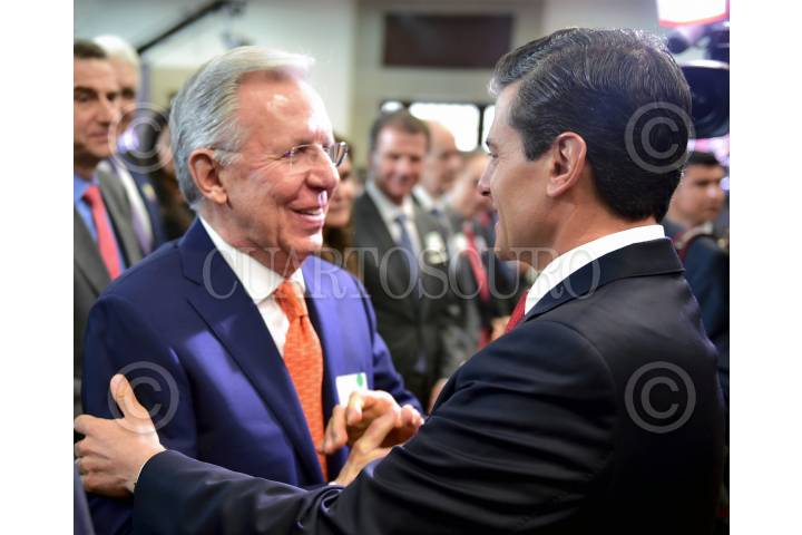 CIUDAD DE MÉXICO, 15JUNIO2017.- El Presidente Enrique Peña Nieto dijo hoy que su Gobierno es, y seguirá siendo, respetuoso de la libertad de expresión y de la pluralidad de voces que se expresan en los medios de comunicación. Lo anterior, durante la ceremonia de cambio de Presidencia del Consejo de la Comunicación en Los Pinos. En la imagen saluda al periodista Joaquín López-Dóriga. FOTO: PRESIDENCIA /CUARTOSCURO.COM