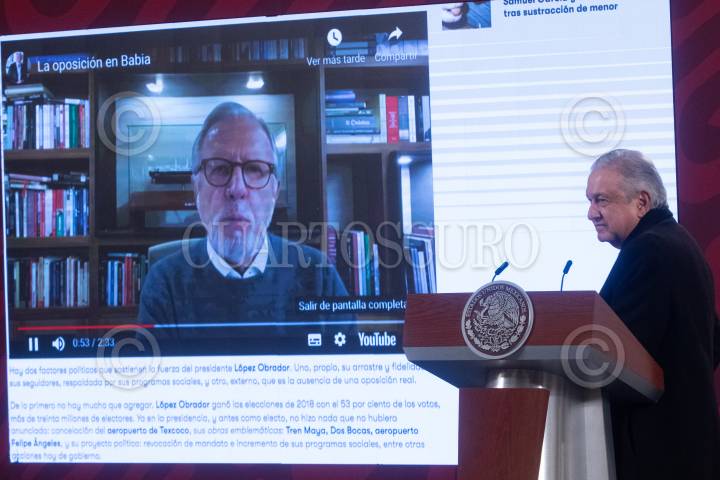 Andrés Manuel López Obrador, Presidente de México, observa un comentario en vídeo del periodista Joaquín López-Dóriga, con el cual dijo que estaba de acuerdo.